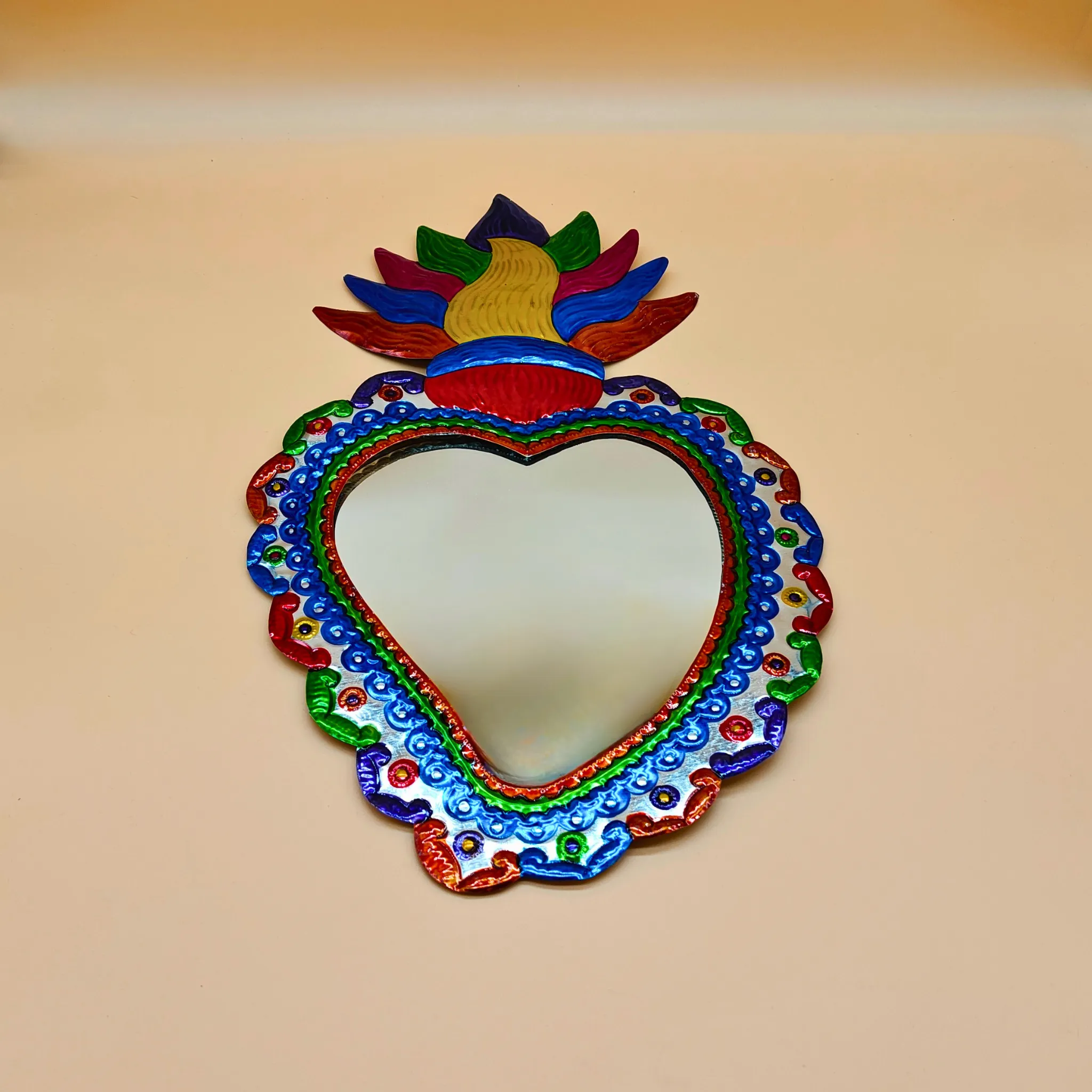 Mirror with embossed and polychrome tin frame